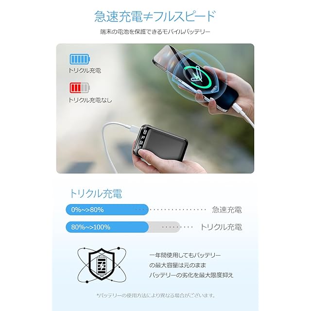 【パッケージ内容】モバイルバッテリー、充電コード、取扱説明書(書付き)。【PSE認証済】本製品はPSEマーク取得済、安心*安全にご使用いただけます。【一年安心メーカー付き】正しい使用方法において、万が一商品に不具合がある場合は、商品ページの販売店舗名をクリックして、「質問する」ボタンより店舗までご連絡いただければ迅速に対応いたします。