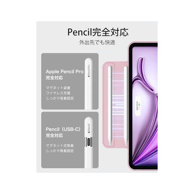 【Pencil Pro&Pencil (USB-C)対応】: Pencil Proへ完全対応かつ、磁気充電用の側面の溝と、Pencilをしっかりと固定するマグネットクラスプを備えています。