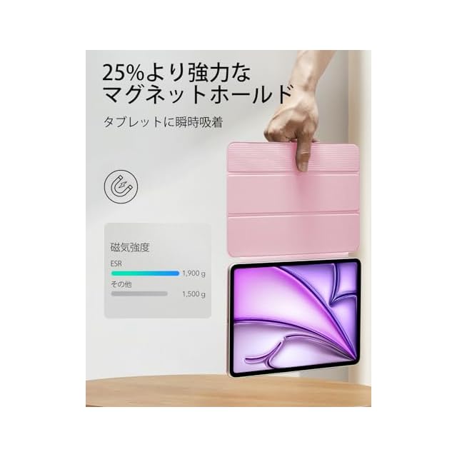 ESR iPad Air 13インチ ケース (M3/M2、2025/2024) 強力マグネット吸着式 スリムな三つ折りスタンドケース Pencil Pro/USB-C完全対応 自動ウェイク/スリープ 耐久性保護 Reboundシリーズ ピンク