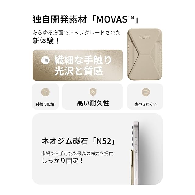 商品名:MOFT【公式直営店】磁力強化版 Snap-On スマホスタンド iPhone 16/15/14/13/12シリーズ対応 カードケース MagSafe対応 マグネット カード収納 ウォレットスタンド スマホグリップ 薄型軽量 折り畳み式 持ち歩き便利 ミニマリスト MOVAS™
