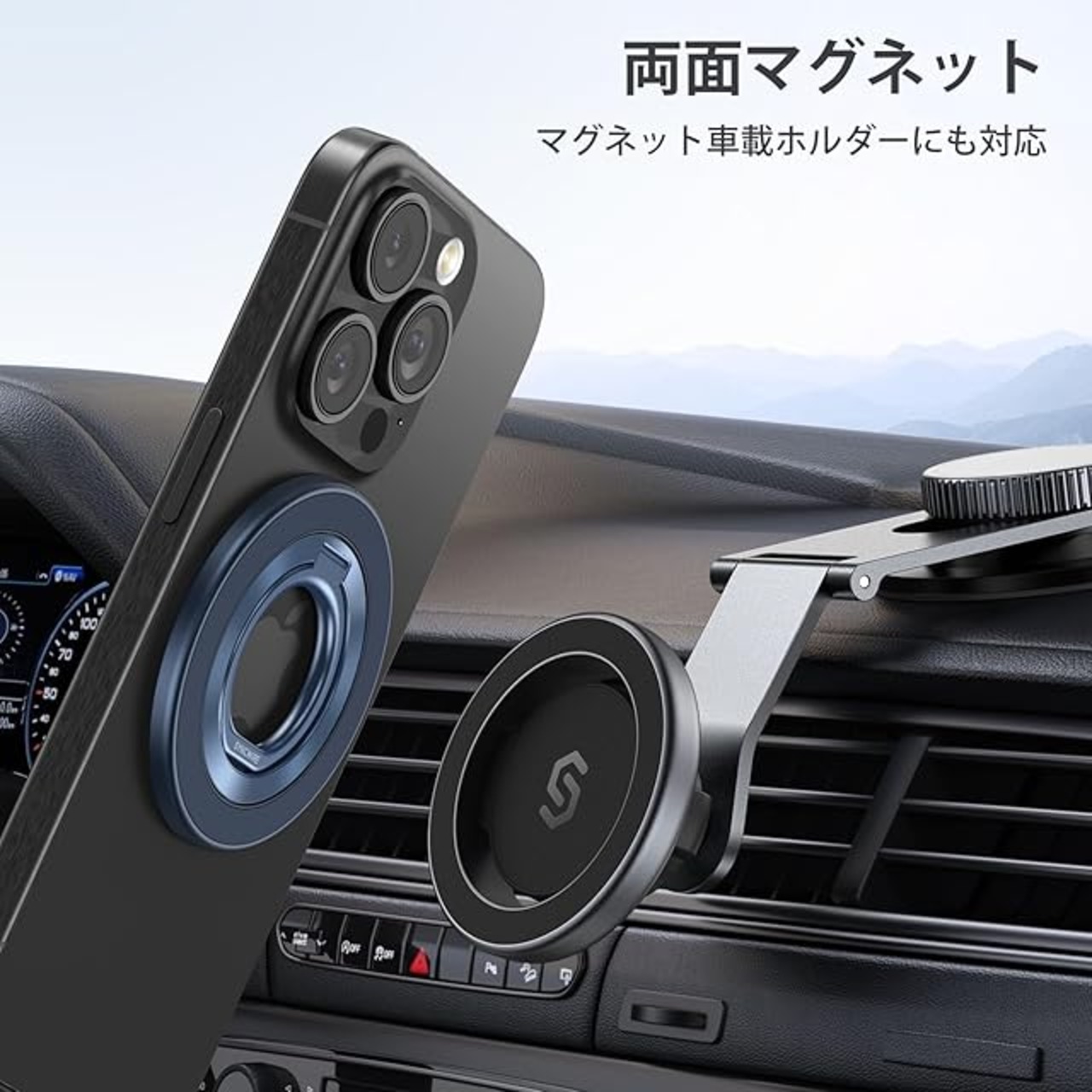 MagSafe対応以外のスマホでも使える:付属のメタルリングでマグセーフに非対応のスマホ(iPhone 12以前のiPhone を含むiPhoneSE (第3世代) / SE (第2世代) / 11 / 11 Pro / 11 Pro Max / XS / XS Max / XR / X / 8 Plus / 8 他、Galaxy S23/ S22 / S22+ / S21 / S21+ / S20 / S20+ / S20 Ultra / S10 他,sonyなどその他Android各種)に取り付けることで、MagSafe対応のスマホでなくてもこのハンガーリングを使用することができます。