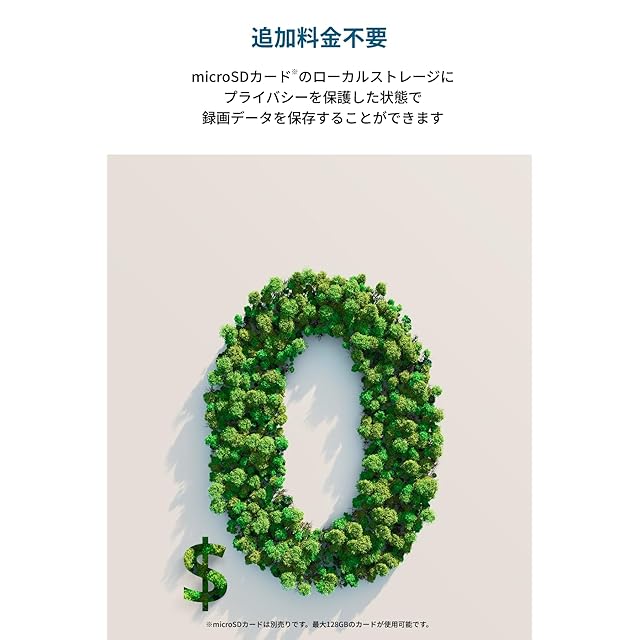 追加料金不要:microSDカード(最大128GB、別売り)のローカルストレージに、暗号化によりプライバシーを保護した状態で録画データを保存することができます。