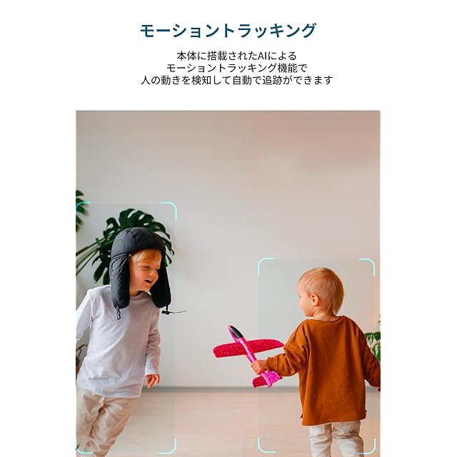 AIによるモーショントラッキング:本体に搭載されたAIによるモーショントラッキング機能で、⼈の動きを検知して自動で追跡ができます。