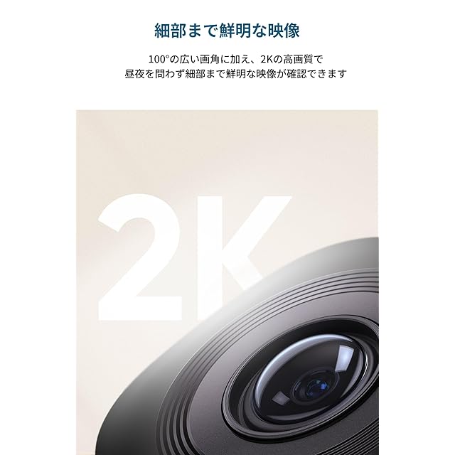 細部まで鮮明な映像:100°の広い画角に加え、2Kの高画質で昼夜を問わず細部まで鮮明に映像が確認できます。