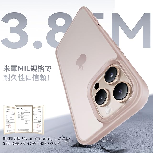 【米軍MIL認証済み・もしもの時も安心】米軍MIL規格「MIL-STD-810G」をクリアした強靭なiPhone 16 Pro 用ケース。四隅のAir-Shock5.0と三層の耐衝撃構造により、3.85mの高さから5500回、36方向でアスファルトや砂利に落下させてもスマホ本体は無傷!日常使いから旅行まで、どんなシーンでも安心して使える。【365日安心】12時間以内に対応、安心してご購入ください!(購入履歴→購入商品→販売者→質問からご連絡ください)米軍MIL認証番号:GZMR220702237705