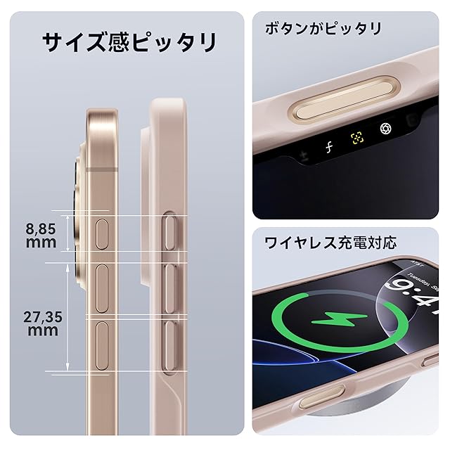 【簡単装着・ワイヤレス充電がもっと楽に!】柔軟性の高いパンパーにより、装着は押し込むだけで簡単!MagSafeやスタンドなどのアクセサリーとの相性抜群!ケースをつけたまま、充電器に置くだけで充電可能。充電のたびにケーブルを接続する手間を省ける。厚みのあるケースのため、MagSafeアクセサリーの磁力が弱まる可能性がありますのでご了承ください。