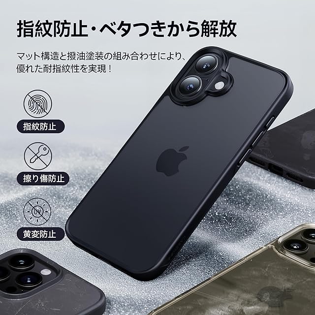 【米軍MIL規格・指紋防止】CASEKOO iPhone 16 用 ケース 耐衝撃 滑り止め 指紋防止 米軍MIL規格 マット仕上げ ストラップホール付き 黄変防止 耐久性 カバー ワイヤレス充電対応 アイフォン 16 用 6.1 インチ ケース(マットブラック) | TREND DESIGN 家電専門店