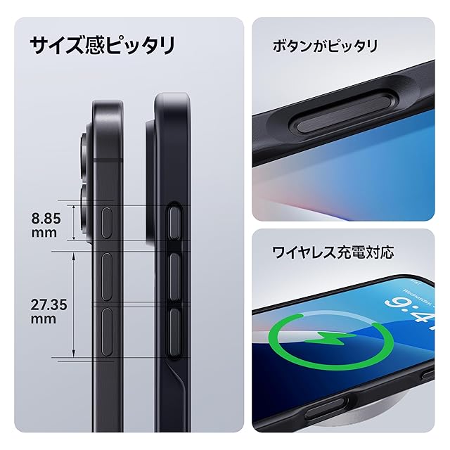 【簡単装着・ワイヤレス充電がもっと楽に!】柔軟性の高いパンパーにより、装着は押し込むだけで簡単!MagSafeやスタンドなどのアクセサリーとの相性抜群!ケースをつけたまま、充電器に置くだけで充電可能。充電のたびにケーブルを接続する手間を省ける。厚みのあるケースのため、MagSafeアクセサリーの磁力が弱まる可能性がありますのでご了承ください。
