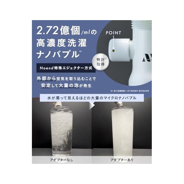 ✅【こすり洗いなしでも超スッキリ】毛穴より小さいナノバブルが、繊維の奥まで侵入して汚れを落とします。シミやえりの黄ばみもお任せください ✅【もう臭わない。部屋干し臭や生乾き臭】匂いの原因となる洗い残しの皮脂汚れをナノバブルの洗浄力で減らす為、部屋干し臭などのニオイを減少させます。 ✅【洗濯のたび、洗濯槽もキレイに】ナノバブルが洗濯槽の汚れを落とします。活性炭フィルターで塩素を除去、塩素が原因の水垢も減らしてWでキレイに ✅【特許出願中の技術で、ナノバブルが安定発生】従来品は水の中の空気からナノバブルを生成していたので、ナノバブルを安定して発生させることが困難でした。本製品は、日本初、特許出願中の技術で外部から空気を取り込むことで安定してナノバブルを発生させることを可能にしました Ag+抗菌で菌の繁殖を防ぎニオイ除去&99%塩素除去で色落ち防止、2つの機能を追加できる「アダプター&フィルターケースセット」がオススメです!