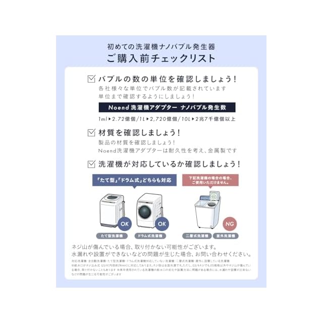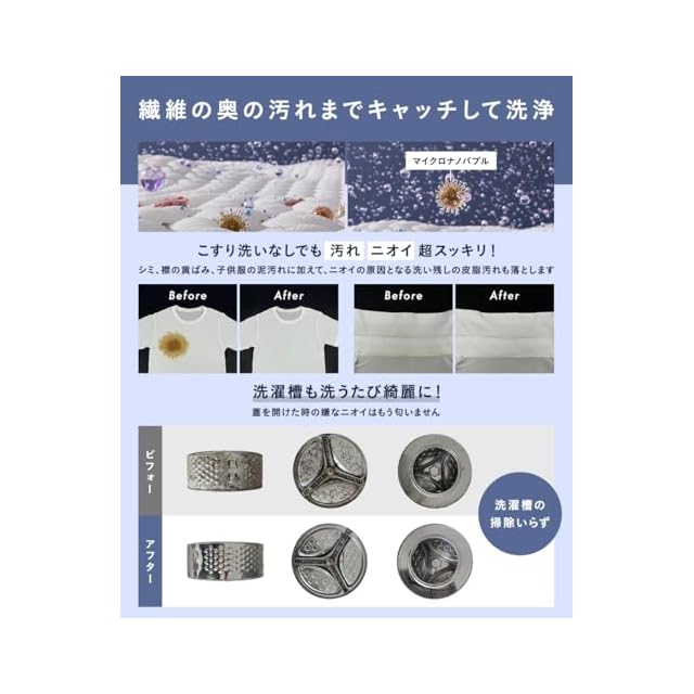 ✅【洗濯のたび、洗濯槽もキレイに】日々の洗濯で、臭いの原因の洗濯槽の汚れをナノバブルが落とします。洗濯槽の嫌なニオイも汚れが原因、洗濯後に蓋を開けた時のイヤなニオイや、衣服へのニオイ移りも減らします