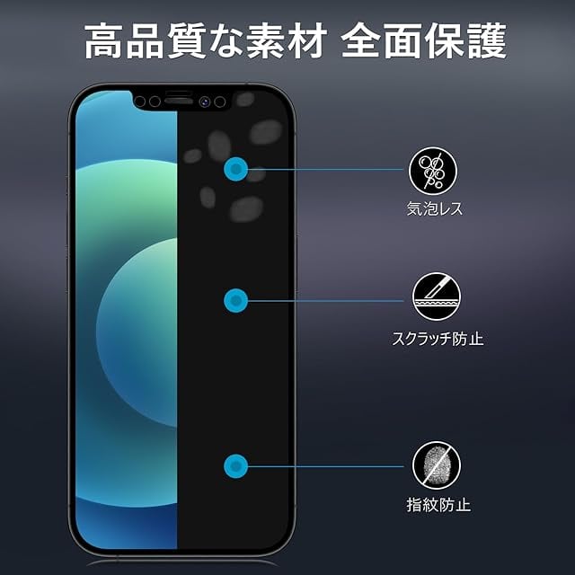 商品名:【360度 / 2枚セット】 iPhone12 Pro max ガラスフィルム 覗き見防止 360 アイフォン12プロマックス360° 全方向 覗き見 いPhone12 Pro max フィルム 上下左右 iPhone 12Promax 用 画面保護 覗き見防止フィルター 【 ガイド枠 付き 】