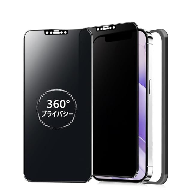 【360度 / 2枚セット】 iPhone12 Pro max ガラスフィルム 覗き見防止 360 アイフォン12プロマックス360° 全方向 覗き見 いPhone12 Pro max フィルム 上下左右 iPhone 12Promax 用 画面保護 覗き見防止フィルター 【 ガイド枠 付き 】