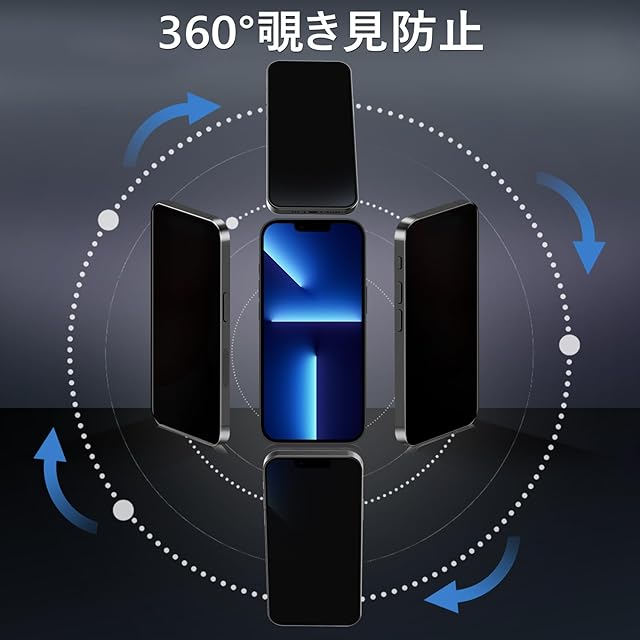 商品名:【360度 / 2枚セット】 iPhone 13 Pro max ガラスフィルム 覗き見防止 360 アイフォン13プロマックス 保護フィルム 360° 全方向 覗き見 いPhone13 Pro max フィルム 上下左右 iPhone 13Promax 用 覗き見防止フィルム 画面保護 覗き見防止フィルター 【 iPhone13 Pro max カメラフィルム 付き 】