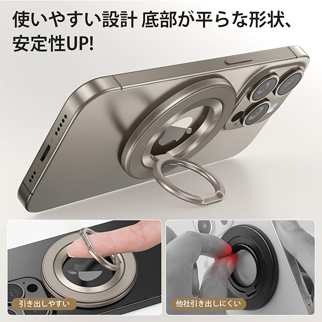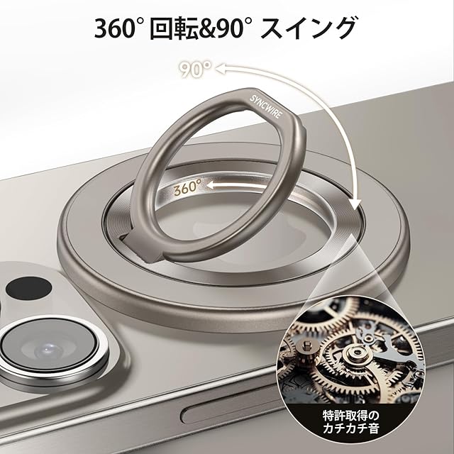 商品名:【ナチュラルチタニウムカラー】Syncwire MagSafe リング - 両面マグネット スマホリング 360度回転 超强磁力 マグセーフ リング マグネット バンカーリング 薄型 角度調節可能 簡単着脱 iPhone 15 Pro/15 Pro Max/ 15 /14 Pro Max/14 Pro/14/13/12 などに対応 アンドロイド 全機種対応 2枚メタルリング付