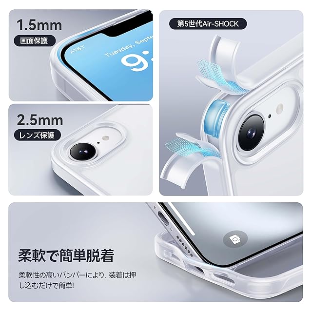 【簡単装着・ワイヤレス充電がもっと楽に!】柔軟性の高いパンパーにより、装着は押し込むだけで簡単!MagSafeやスタンドなどのアクセサリーとの相性抜群!ケースをつけたまま、充電器に置くだけで充電可能。充電のたびにケーブルを接続する手間を省ける。厚みのあるケースのため、MagSafeアクセサリーの磁力が弱まる可能性がありますのでご了承ください。対応機種:iphone 16e ケース 耐衝撃