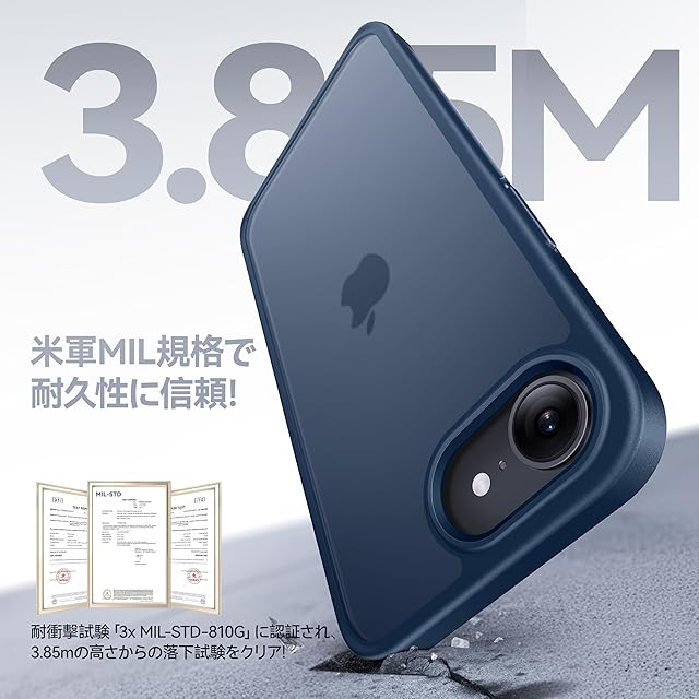 【米軍MIL認証済み・もしもの時も安心】米軍MIL規格「MIL-STD-810G」をクリアした強靭なiPhone 16e 用ケース。四隅のAir-Shock5.0と三層の耐衝撃構造により、3.85mの高さから5500回、36方向でアスファルトや砂利に落下させてもスマホ本体は無傷!日常使いから旅行まで、どんなシーンでも安心して使える。【365日安心】12時間以内に対応、安心してご購入ください!(購入履歴→購入商品→販売者→質問からご連絡ください)米軍MIL認証番号:GZMR220702237705