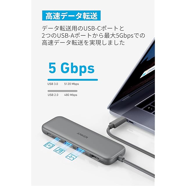 商品名:Anker 332 USB-C ハブ (5-in-1) グレー 100W USB PD対応 4K HDMIポート5Gbps 高速データ転送 USB-C/USB-Aポート搭載