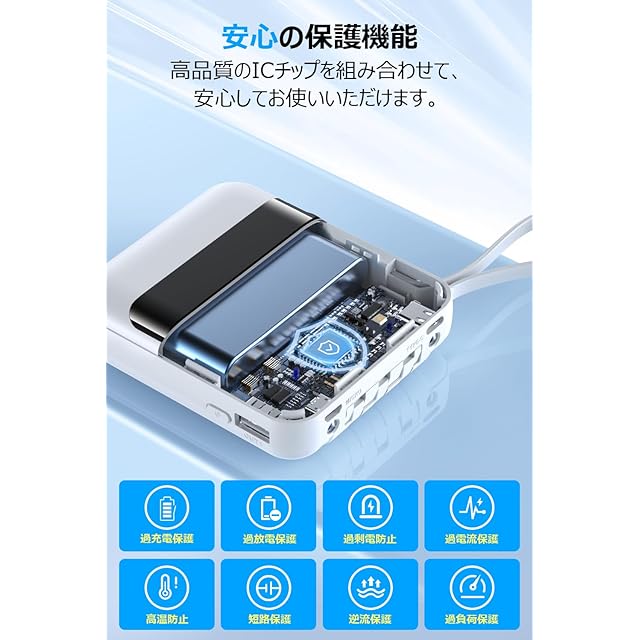 【多重安全保護機能付き&PSE&MFi認証済】こちらのモバイルバッテリーは高品質なリチウムオンバッテリの採用により、過充電を抑制し、充電中の機器の安全を保障します。過度な温度上昇をやショートを防止機能付きで発火のリスクを低減し、他にも、過放電・過電圧・過電流などを防止する機能を備えて、安心して製品をご使用いただけます。同時に、PSEマークとMFi認証が取得しておりますので、安心、安全にもご使用いただけます。独自のスマート機能によりデバイスを自動で判別し、最適な出力で急速充同時に、UN38.3バッテリー構造設計、高密度PC高温耐性、耐火性原材料を使っており、PSE、METIなどの認証を取得したので、安心してお使いいただけます。大容量の上に、安全性を重視する方には有力な選択肢となる商品です。