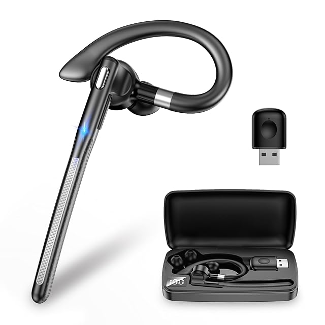 【2025新登場 Bluetoothヘッドセット】 Bluetooth5.4 イヤホンマイク イ ヤホン 片耳 ワイヤレス 耳掛け型 CVC8.0ノイズキャンセリング ハンズフリー通話 マイク内蔵 ミュート/SIRI機能搭載 在宅勤務/運転/オンライン会議/ビジネ web会議用イヤホンマイク 搭載USB Bluetooth 5.4 対応 パソコン/タブレット 対応 アダプタ ブルートゥース子機
