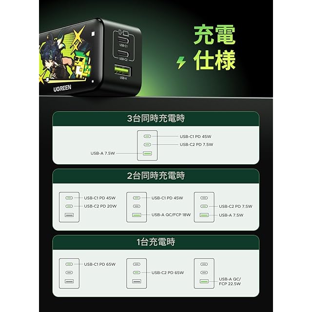 商品名:UGREEN Nexode 急速充電器 65W 原神モデル