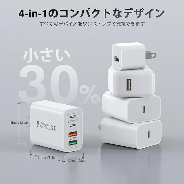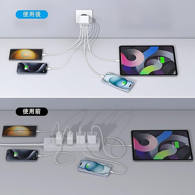 ⚡【マルチポートUSBコンセント】:タイプc 充電器は、デュアル USB-C ポートとデュアル USB-A ポートがあります。ユーザーは電話、タブレット、ヘッドフォンを同時に充電して、待ち時間を最小限に抑えることができます。また、4 つの壁コンセント ポートを占有する代わりに、スペースを節約できます。元の USB 充電器の最高の代替品です。