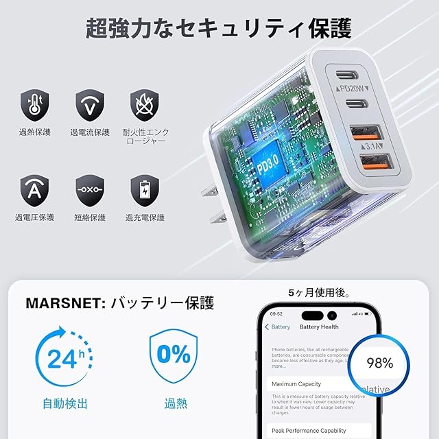 ⚡【安全で信頼性の高いACアダプター】: スマートチップを搭載しており、携帯電話の入力電力を調整して過充電や過熱を防ぎます。