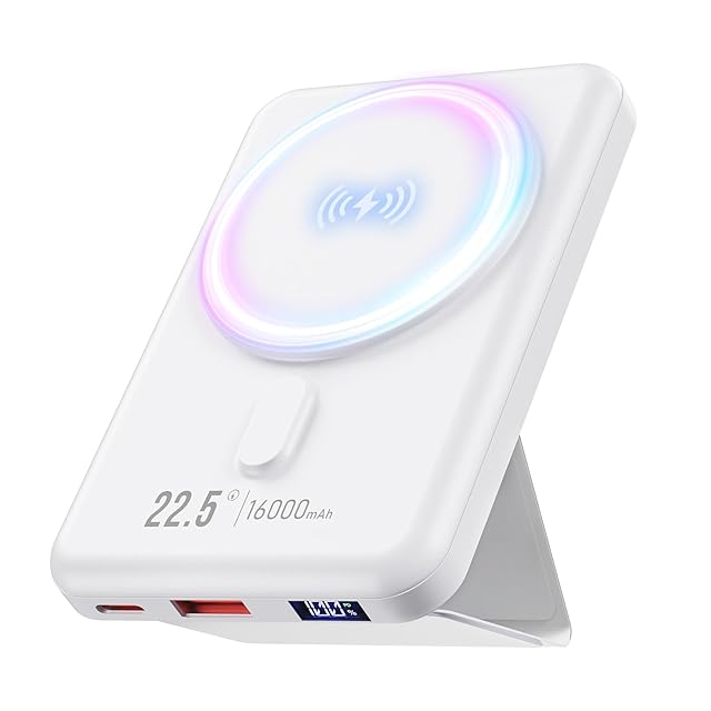 商品名:【16000mAh大容量&MagSafe対応 】モバイル バッテリー 軽量 小型 大容量 マグネット式ワイヤレスモバイルバッテリー マグセーフ充電器 ワイヤレス充電 急速充電 3台同時充電可能 折りたたみ式スタンド LEDディスプレイ コンパクト軽量 PSE認証済み iPhone/iPad/Android/Airpods 各種対応 持ち運び充電器 旅行/出張/緊急用