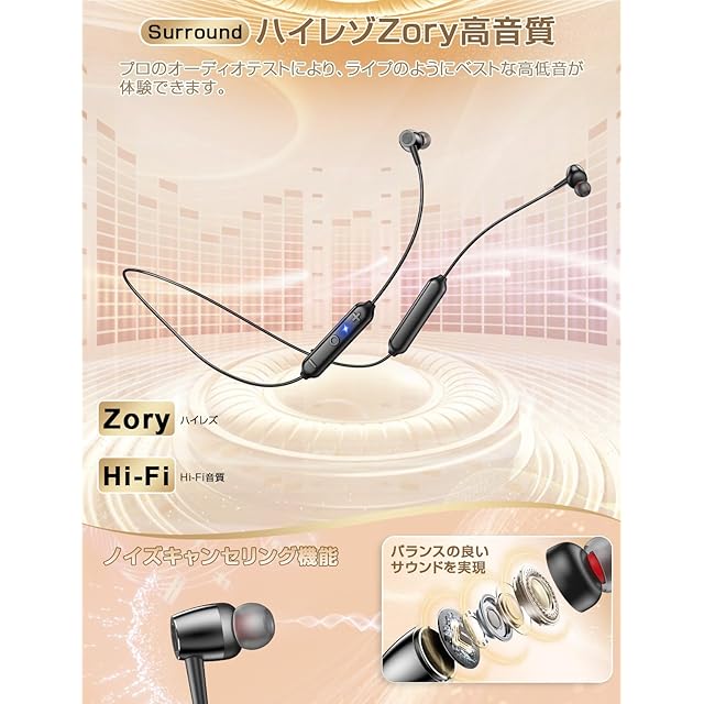 商品名:【2025新型番イヤホン Bluetooth 5.4・ネックバンドイヤホン次元突破・20時間連続再生】イヤホン ワイヤレス 収納便利 ネックバンドイヤホン 革新設計 凸構造ボタン+柔軟コード ノイズキャンセリング タイプC 急速充電 超軽量 首掛け ワイヤレス ブルートゥース Hi-Fi Bluetooth ネックバンド 自動ペアリング ハンズフリー通話 技適認証済