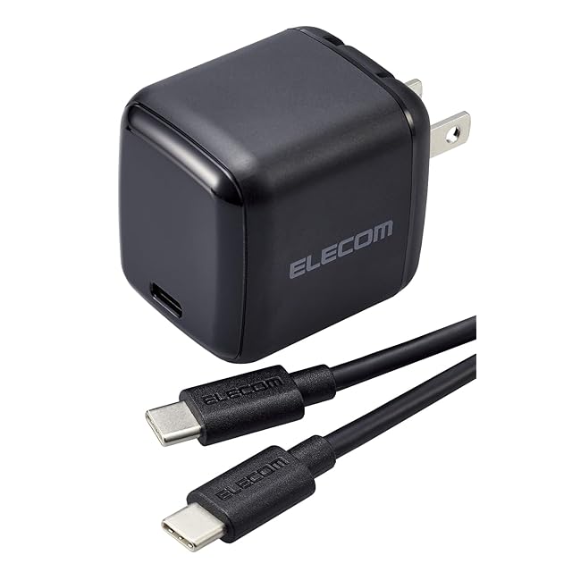 商品名:エレコム 充電器 65W USB PD対応 Type-Cケーブル付属 (2m) 小型 Type-C 1ポート PPS対応 GaN II採用 PSE認証 ブラック 【iPhone 16 15 iPad Macbook 等対応】 EC-AC8765BK
