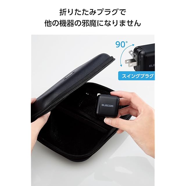 GaN II(窒化ガリウム)を採用し、高出力ながらコンパクトサイズを実現。プラグ部分も折り畳むことができるため、バッグの中でもスペースを取らず、ビジネスでの外出やリモートワーク、出張、旅行など持ち運びにも便利です。