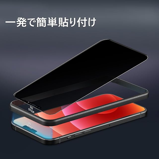 【ガイド枠付き,初心者でも綺麗に貼れる】 ガイド枠をはめる→上側に合わせて、フィルムを置く→軽く押すだけで自然に吸着。初めての方でも簡単に貼り付けられるよう、専用の貼り付けガイド枠を同梱しています。いPhone12 ガラスフィルムがズレることなく、だれでも簡単にフィルムを貼ることができます。