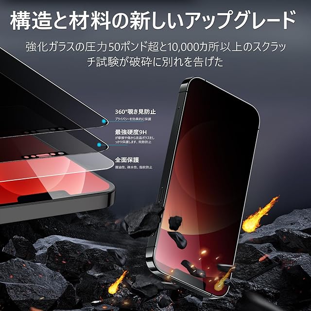 商品名:【360度 / 2枚セット】 iPhone 12 Pro ガラスフィルム 覗き見防止 360 いPhone12 フィルム 360° 全方向 覗き見 アイフォン12 / 12プロ 保護フィルム 上下左右 iPhone 12Pro 用 画面保護 覗き見防止フィルター 【 ガイド枠 付き 】