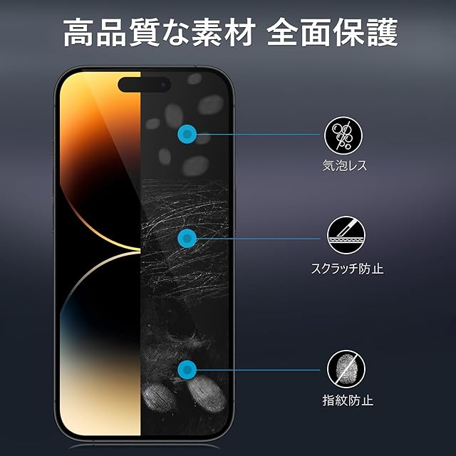 商品名:【360度 / 2枚セット】 iPhone 14 Pro ガラスフィルム 覗き見防止 360 アイフォン14プロ 保護フィルム 360° 全方向 覗き見 いPhone14 Pro フィルム 上下左右 iPhone 14Pro 用 覗き見防止フィルム 画面保護 覗き見防止フィルター 【 iPhone14Pro カメラフィルム 付き 】