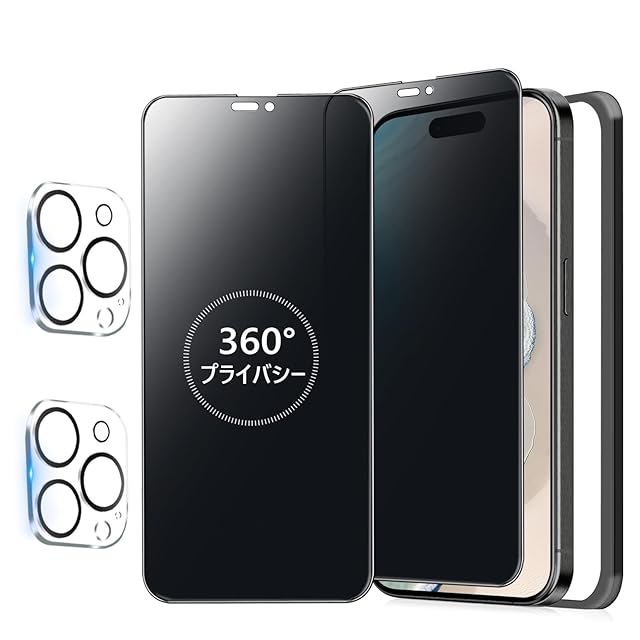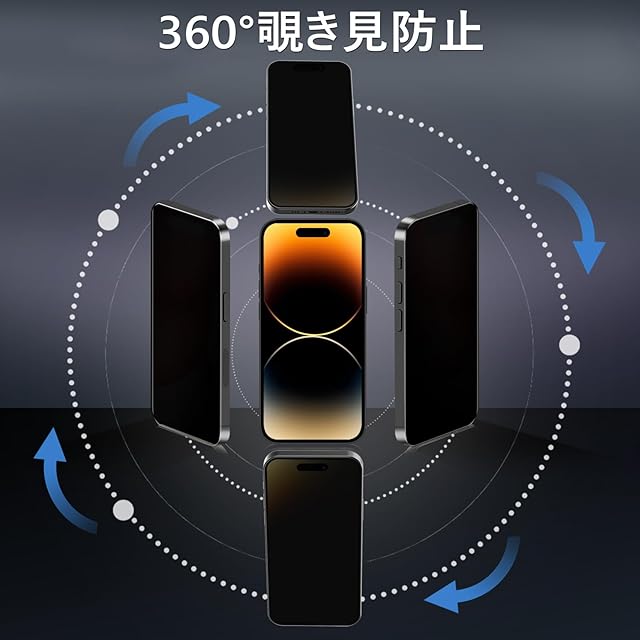 【360度 / 2枚セット】 iPhone 14 Pro ガラスフィルム 覗き見防止 360 アイフォン14プロ 保護フィルム 360° 全方向 覗き見 いPhone14 Pro フィルム 上下左右 iPhone 14Pro 用 覗き見防止フィルム 画面保護 覗き見防止フィルター 【 iPhone14Pro カメラフィルム 付き 】
