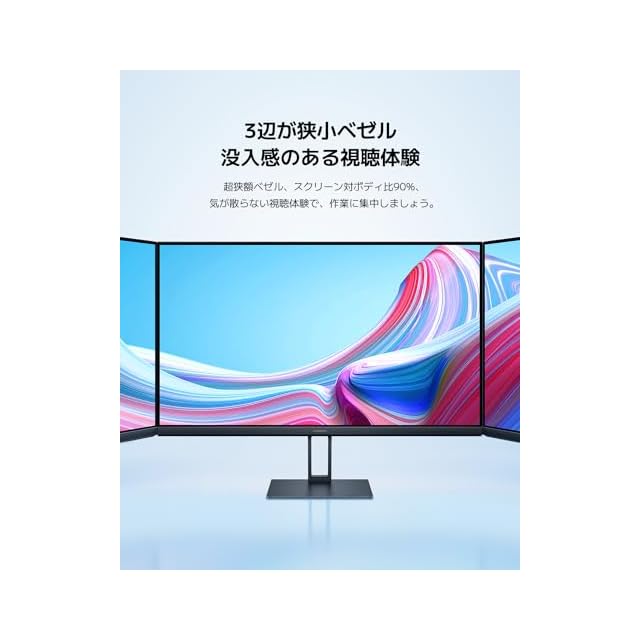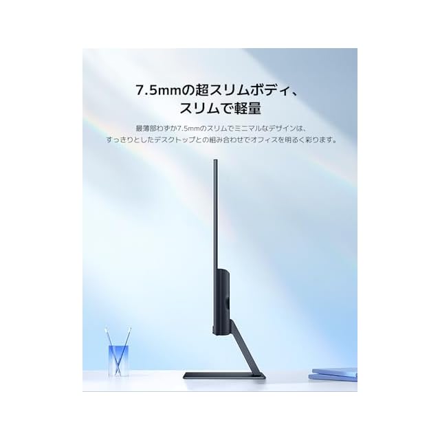 【スリムで軽量】最薄部わずか7.5mmのスリムでミニマルなデザインは、すっきりとしたデスクトップとの組み合わせでオフィスを明るく彩ります。超狭額ベゼル、スクリーン対ボディ比90%、気が散らない視聴体験で、作業に集中しましょう。