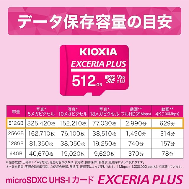 KIOXIA(キオクシア) 旧東芝メモリ microSD 512GB EXCERIA PLUS UHS-I U3 V30 Class10 Nintendo Switch動作確認済 microSDXC 最大読出100MB/s 最大書込85MB/s 4K対応 国内サポート正規品 メーカー5年 KLMPAE512G | TREND DESIGN 家電専門店