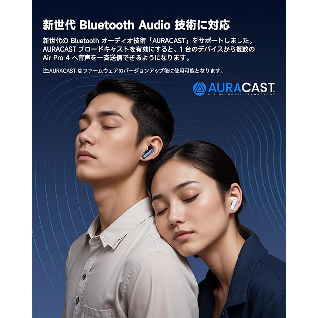 【新技術のLE AudioとAuracastに対応】新世代の Bluetooth 標準 LE Audio と AURACAST ワイヤレス共有リスニング技術をサポートし、世界とつながる新しい方法を開きます。 AURACASTブロードキャストを導入すると、Wi-Fiネットワークを探す感覚で参加し、デバイスを接続してブロードキャスト(搭乗ブロードキャストや待機ブロードキャストなど)を受信できるので、ブロードキャストを見逃す心配がありません。 ※ LE Audio、AURACASTはファームウェアのバージョンアップ後に使用可能となります。