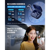 【6つのマイク+AI技術で高品質な通話を実現/ 低遅延ゲームモード】 左右に各3基搭載された高性能マイクを活用し、集音した声に対してノイズ除去を行う「cVc 8.0」に対応しました。騒がしい環境でも、聞き取りやすい声を通話相手に届けることができます。「EarFun Audio」アプリでゲームモードをオンにすると、ワイヤレスオーディオの遅延を最大50ms(0.05秒)に 短縮でき、音と映像の同期ズレが気にならなくなります。
