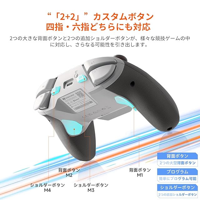 【PC・スマートフォン対応アプリで、マクロボタン自在にカスタマイズ可能!】: BLITZ2 コントローラーは、ゲームプレイにさらなる自由度をもたらします。PCおよびスマートフォンに対応した専用アプリを使えば、背面に配置された2つの大きなボタンと、2つのショルダーボタンを含む4つのカスタムキーを、自分好みに設定することが可能です。このカスタムキーは、ゲーム内での操作効率を大幅に向上させ、瞬時にコマンドを実行できるマクロ設定もサポートしています。アプリを使用することで、特定の動作を一つのボタンに集約するマクロ機能を簡単に設定でき、FPSゲームやアクションゲームなど、反応速度が求められるシーンで圧倒的な優位性を発揮します。また、スマートフォンから直接設定を変更できるため、プレイ中でも素早く調整が可能です。PC版アプリでは、ファームウェアのアップデートも手軽に行え、常に最新のパフォーマンスを維持できます。これにより、ユーザーは自分のプレイスタイルに最適化された設定を簡単に導入でき、どのようなゲームでもプロフェッショナルな操作感を楽しむことができます。