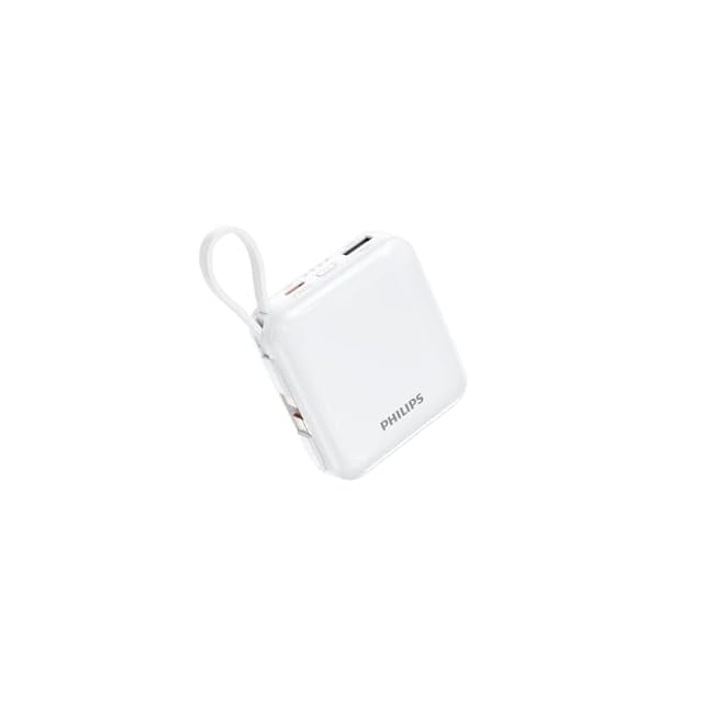 Philips (フィリップス) モバイルバッテリー 10000mAh 大容量 小型 携帯充電器 Lightning type-c ケーブル内蔵 22.5W タイプc ライトニング 4台同時充電 スマホ 持ち運び iPhone 16 / 15 Android iPad 各種機器対応 PSE認証済 ホワイト DLP5713CW | TREND DESIGN 家電専門店