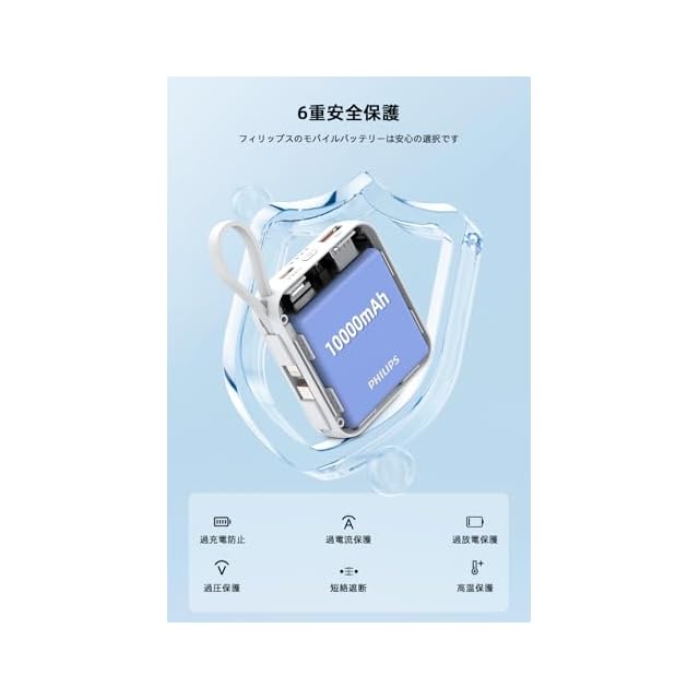 【多種安全保護&品質】過充電、過放電、過電流、過電圧、過熱、短絡遮断など基本的な保護機能を搭載します。さらに、PSE認証も済み、より良い安心安全な充電が行えます。弊社が販売しているPhilips商品はすべて正規品です。何かご不明な点などございましたらお気軽にお問い合わせくださいませ。