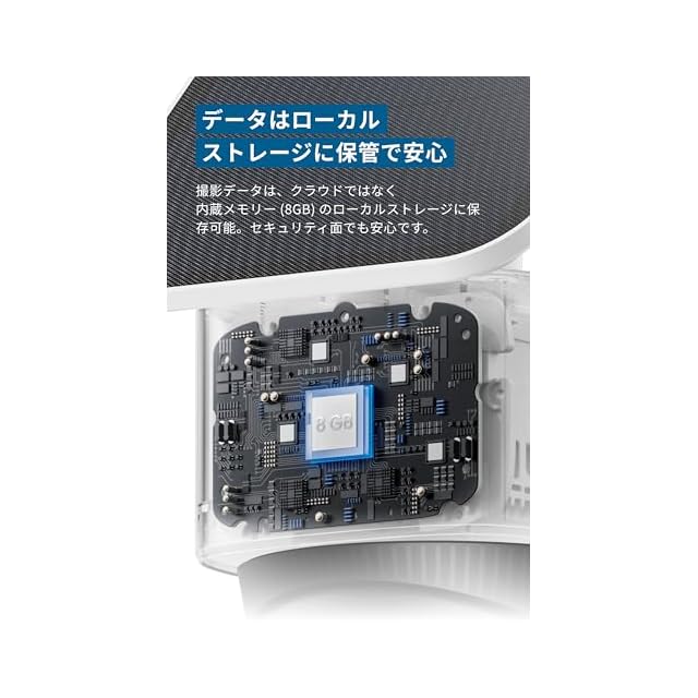 データはローカルストレージに保管で安心:撮影データはクラウドではなく本体内蔵メモリー (8GB) に保存可能で、月額料金が不要。データは暗号化され保存されるため、セキュリティ面でも安心です。