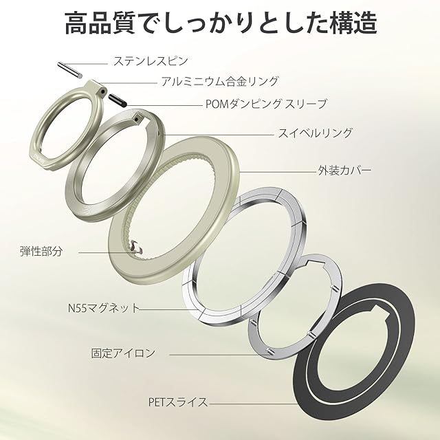 超軽量ながら超强磁力:わずか26.3g、超軽量!たっだ指一本でスマホの落下を防止。業界最強N55磁石で強力な磁吸力を実現し、約1.4KGgまでの荷重に耐えます。iPhone16 Pro Maxの重さでも問題なく使用できます。