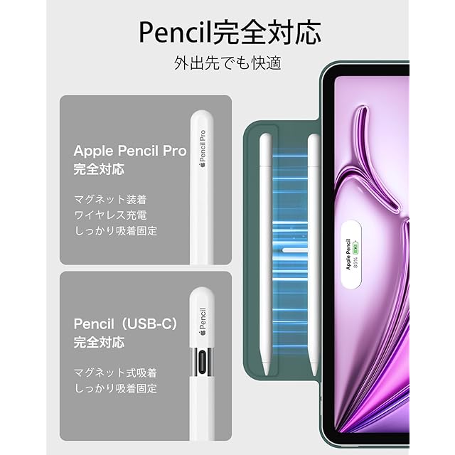 【Pencil Pro&Pencil (USB-C)対応】: Pencil Proへ完全対応かつ、磁気充電用の側面の溝と、Pencilをしっかりと固定するマグネットクラスプを備えています。