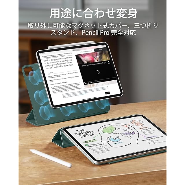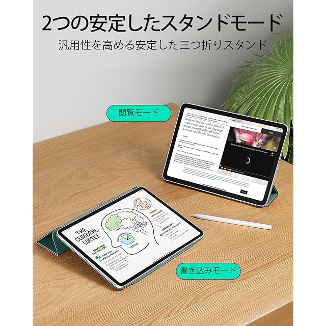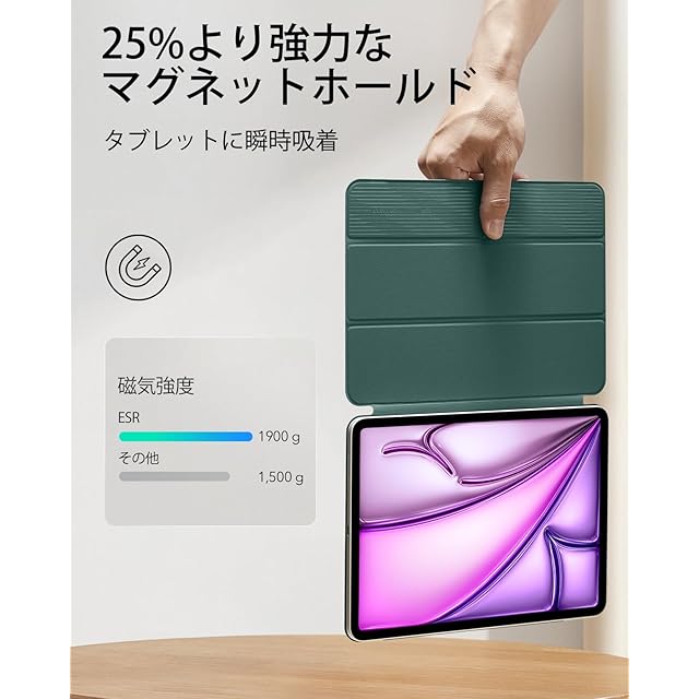 商品名:ESR iPad Air 13インチ ケース (M3/M2、2025/2024) iPad Pro 12.9 専用カバー 第6/5/4世代(2022/2021/2020) 強力マグネット吸着式 スリムな三つ折りスタンドケース Pencil Pro/USB-C対応 自動ウェイク/スリープ 耐久性保護 Reboundシリーズ グリーン