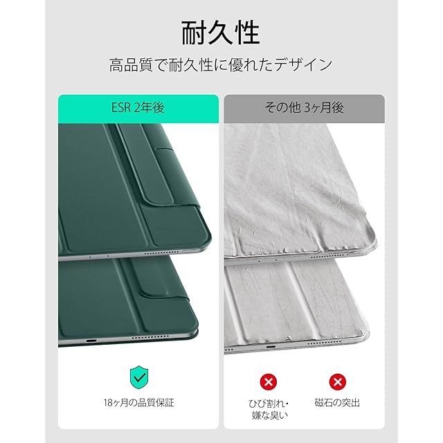 ESR iPad Air 13インチ ケース (M3/M2、2025/2024) iPad Pro 12.9 専用カバー 第6/5/4世代(2022/2021/2020) 強力マグネット吸着式 スリムな三つ折りスタンドケース Pencil Pro/USB-C対応 自動ウェイク/スリープ 耐久性保護 Reboundシリーズ グリーン | TREND DESIGN 家電専門店