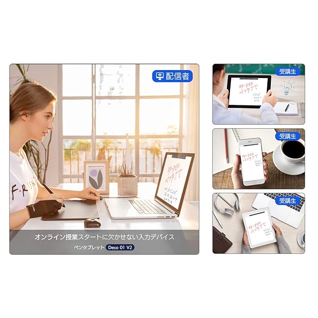 【在宅勤務&オンライン授業】XPPenペンタブDeco01V2はオンライン従業に欠かせない入力デバイスです。在宅でも効率よく仕事·勉強できます。オンライン会議、遠隔授業、テレワーク、デザイン、動画編集、マンガ制作、イラスト練習様々な場面で活用できます。