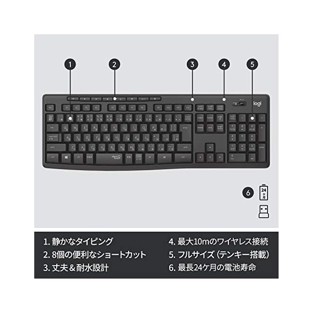商品名:ロジクール ワイヤレスキーボード K295GP 静音 耐水 キーボード 無線 Unifying K295 windows chrome グラファイト 国内正規品