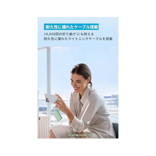 外出時にはこれ一つ:折りたたみ式プラグを採用し、ポーチやミニバッグにも収まる小型デザイン。コンセント一体型且つライトニングケーブル一体型のため、充電器とケーブルを別途持ち運ぶ必要がありません。