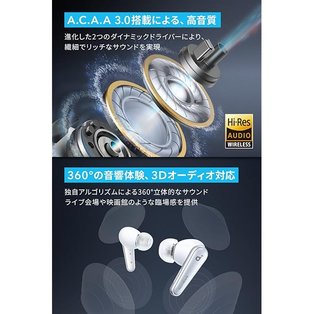 繊細でリッチなサウンド:Anker独自のドライバー「A.C.A.A 3.0」搭載で細かなサウンドも明瞭に聞こえる繊細でリッチな音質を実現。また、高音質コーデック・LDACに対応しています。